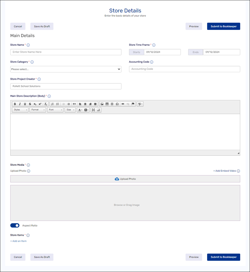 • To submit your store for approval, click Submit to Bookkeeper. The bookkeeper will enter the accounting code and submit the store for district/school approval.