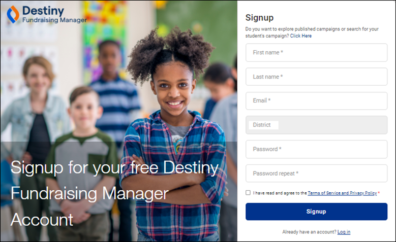 If your school or district uses Destiny Fundraising Manager (DFM), you can sign up for a free account using your school email. A DFM account lets you create and manage school fundraisers.