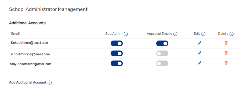 School Admins can manage accounts for others, including bookkeepers, teachers, boosters, and other fundraiser organizers. You can also create a new account.