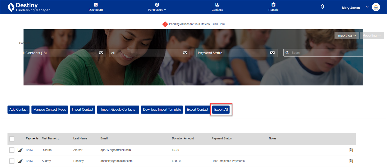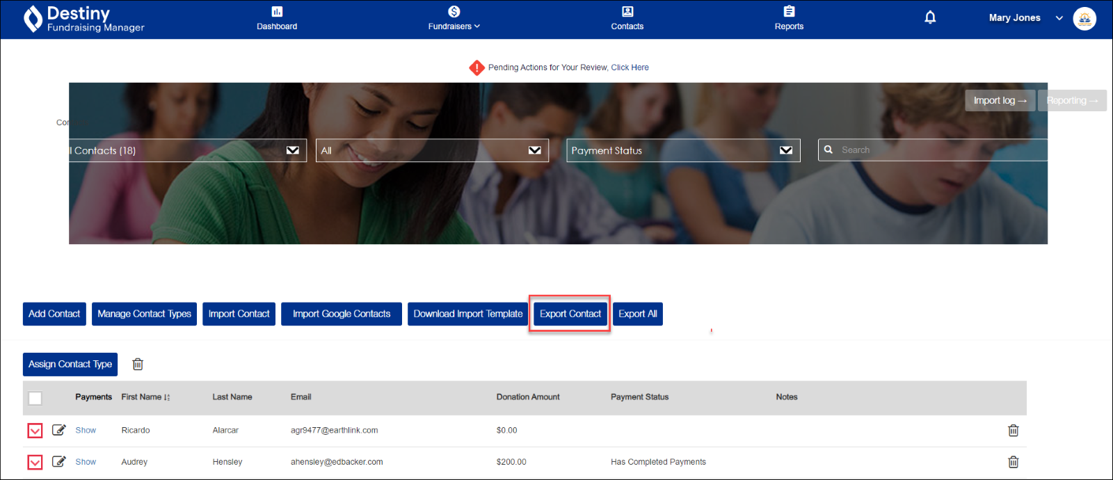 You can export some or all of your contact records into a CSV (comma-separated values) file for review. The file includes the following information: