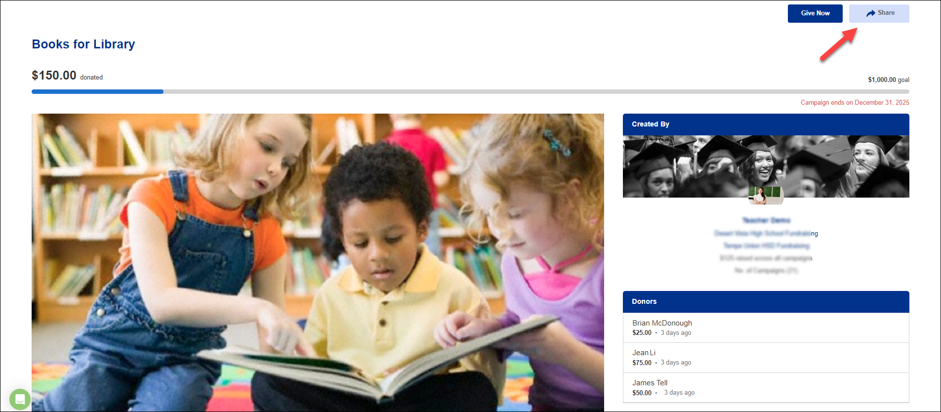 This seal ensures school and/or district administrators have reviewed and approved the campaign before publication and that it complies with your district's mandated fundraising policies.