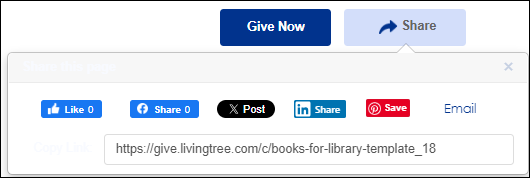 Go to the Campaign page and click Share in the top-right corner.