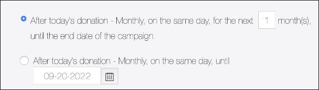 If you select an end date (second option), your donation will occur until that date, even if the fundraising campaign has officially ended.