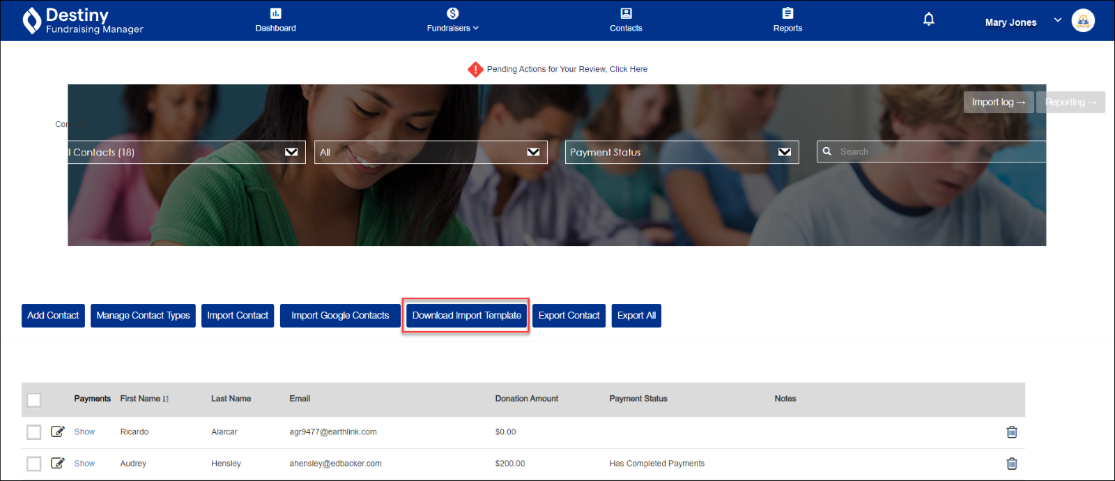 You might have a spreadsheet with contact information for the people who support your organisation’s fundraising activities. You can import these contacts into Destiny Fundraising Manager using a template provided in the application.