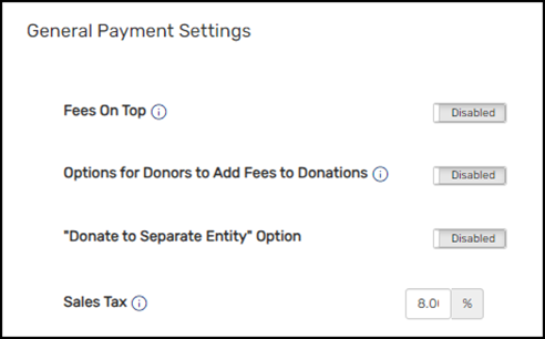 2. Under Payment Settings, select General. The General Payment Settings page appears.