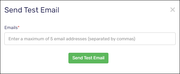 - To test your settings, click Send Test Email (First in Sequence). In the pop-up, type up to five email addresses, separated by a comma, and then click Send Test Email. Verify that the recipient(s) receive Email 1 on the specified date.