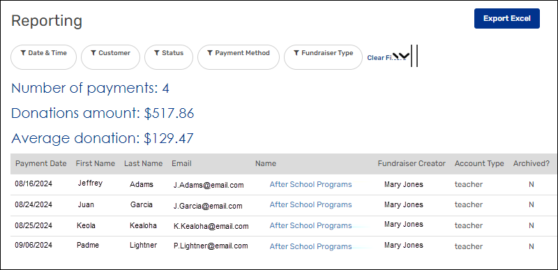 You can view your data to see donors and donation amounts for a specific fundraiser.